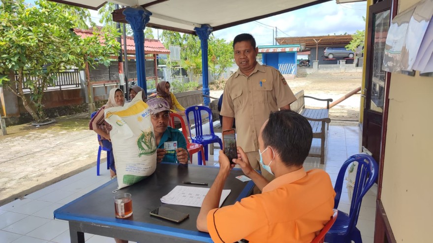 Dalam rangka bantuan pangan Kementerian Sosial berbentuk Beras dari BULOG kepada masyarakat yang tidak mampu.