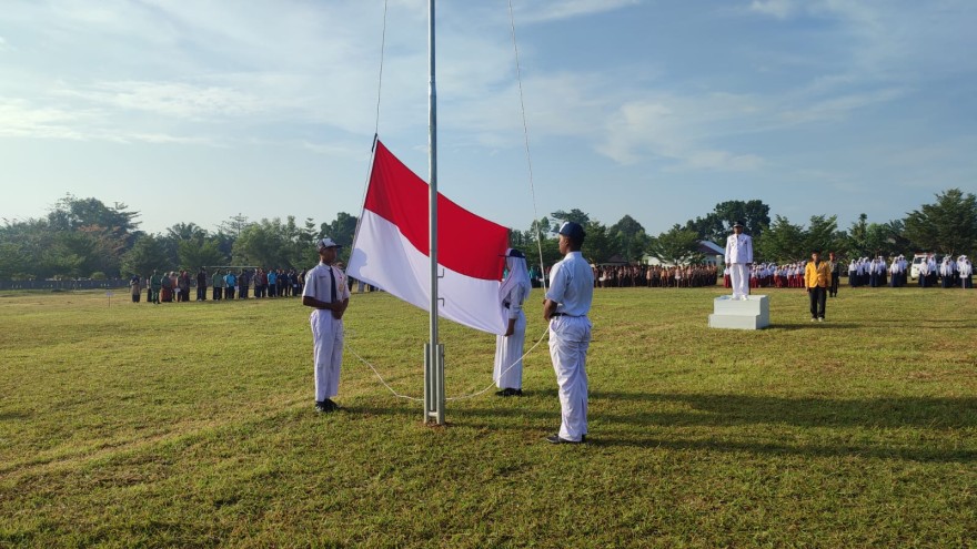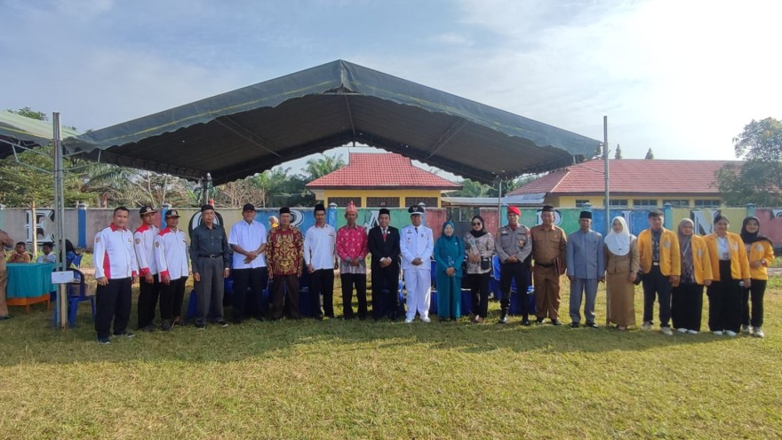 dalam meryakan HUT Kemerdekaan RI yang ke 79, Desa pangkalan tiga melaksanakan upacara bendera pada, sabtu 17 agustus 2024 di lapangan Sepak Bola.